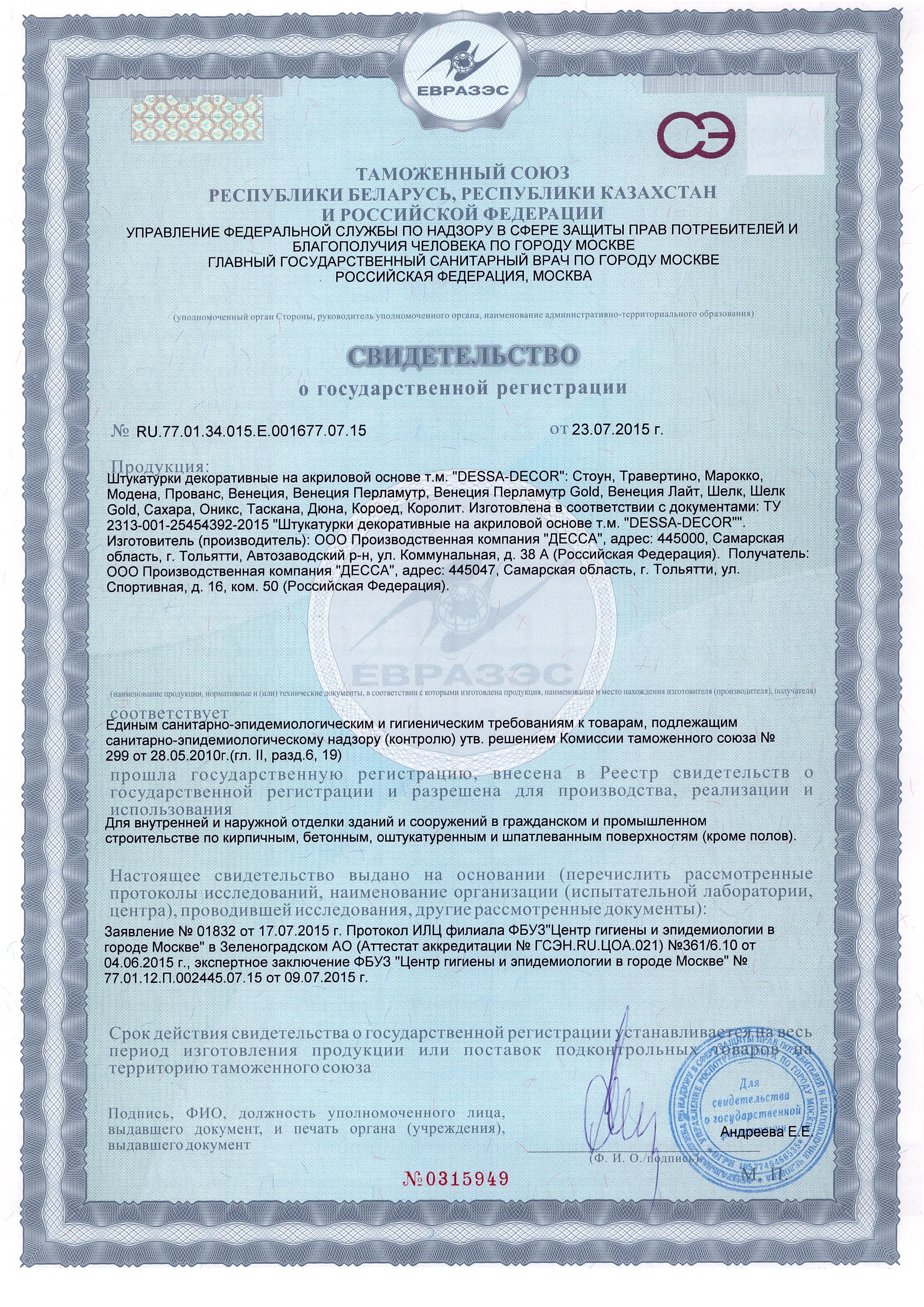 Сертификаты на декоративные штукатурки и краски