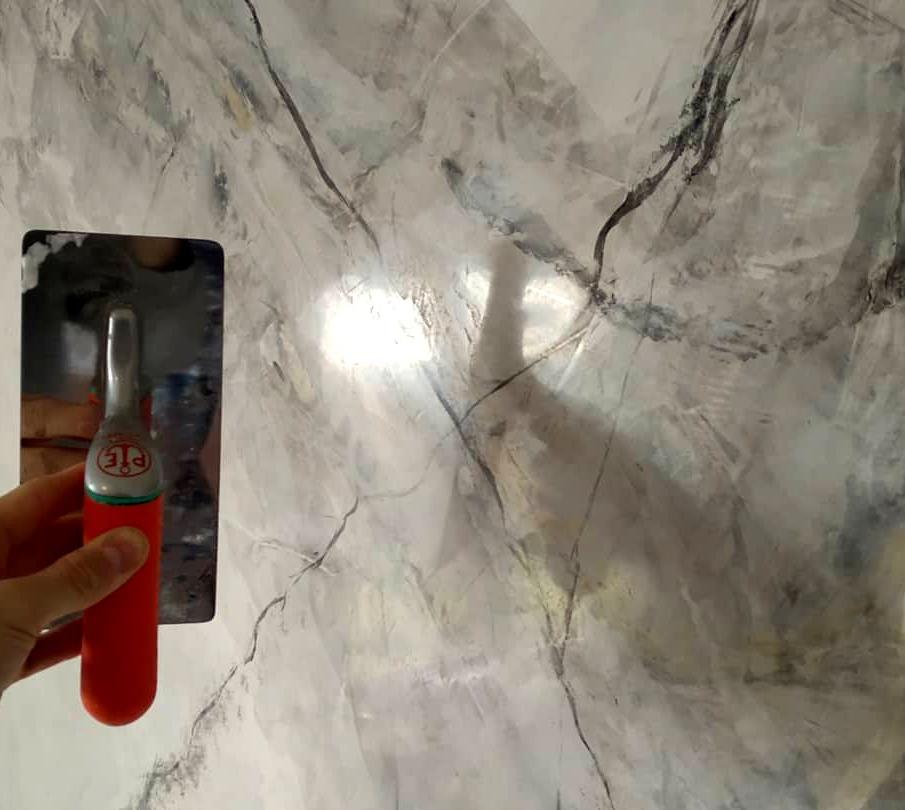 Особенностью данной декоративной штукатурки является высочайшая белизна молотого мрамора, что позволяет достичь высокой степени глянца. Наносится на предварительно подготовленную, зашпатлеванную поверхность.